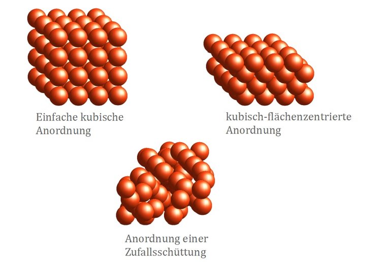 In Analogie zu unserer bisherigen Betrachtung folgt nun eine Abbildung der unterschiedliche Strukturen von Schüttungen. Dargestellt werden die Schüttungen mit Hilfe von monodispersen Kugeln: