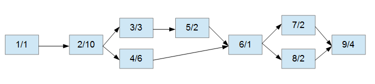 Für den folgenden Vorgangsknotennetzplan sollen die frühestmöglichen und spätestmöglichen Anfangs- und Endzeitpunkte bestimmt werden.